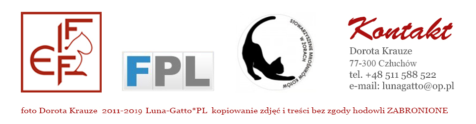 brytyjskich krótkowłosych. Nasza hodowla Luna-Gatto*PL powstała w czerwcu 2011r, i jest zarejestrowana w Stowarzyszeniu Miłośników Kotów w Żorach, będącym członkiem Federacji Felis Polonia, działającej pod patronatem FIFe.